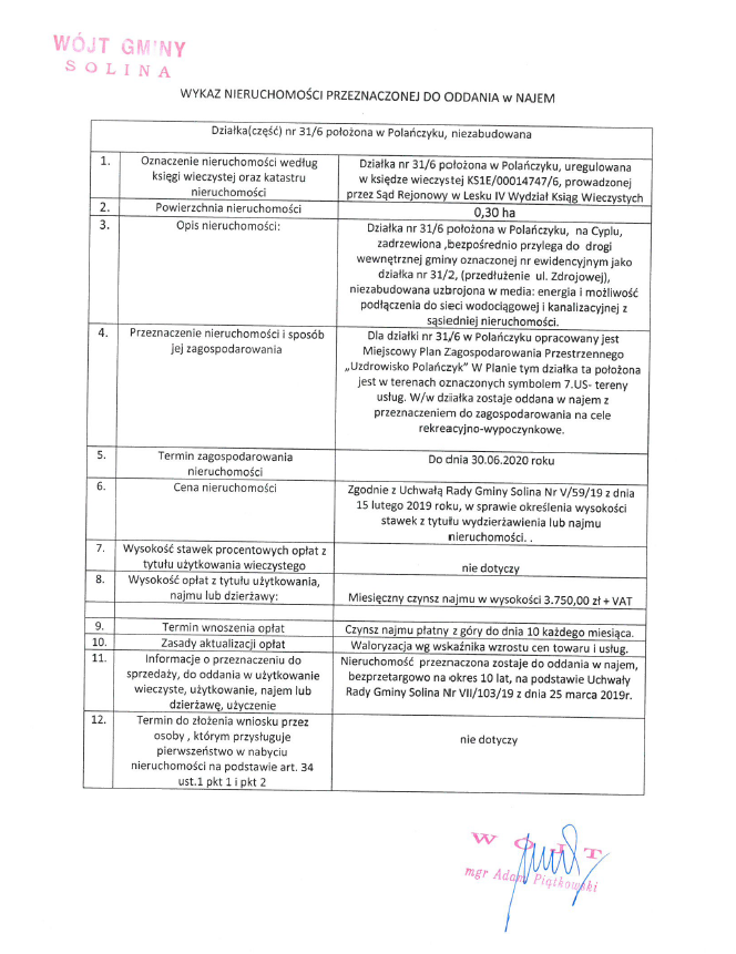 Obwieszczenie Wójta Gminy Solina z dnia 24 stycznia 2025 r.