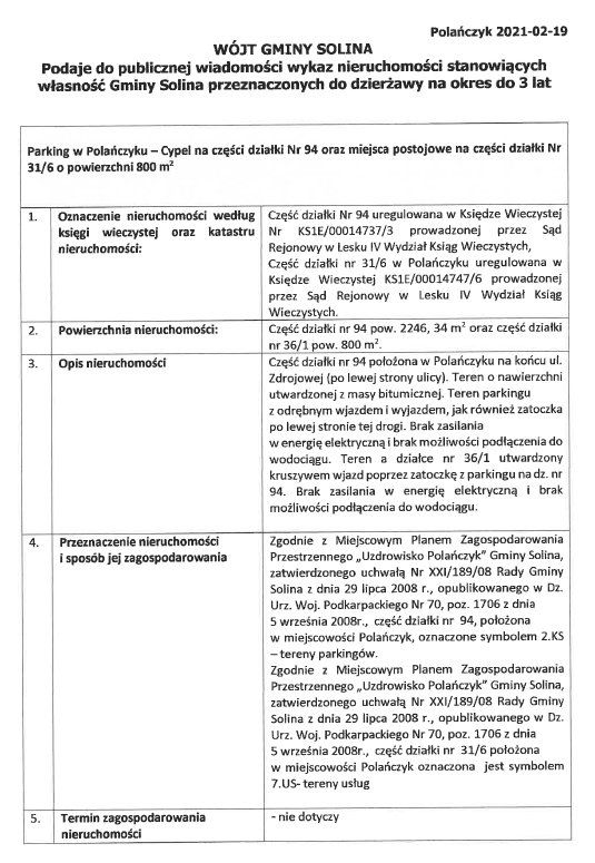Obwieszczenie Wójta Gminy Solina z dnia 24 stycznia 2025 r.