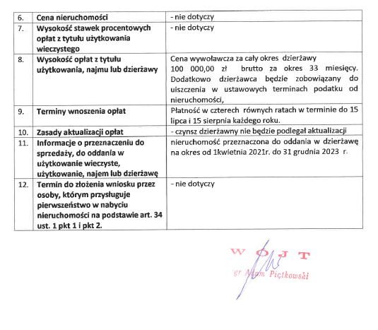 Wykaz nieruchomości przeznaczonych do dzierżawy