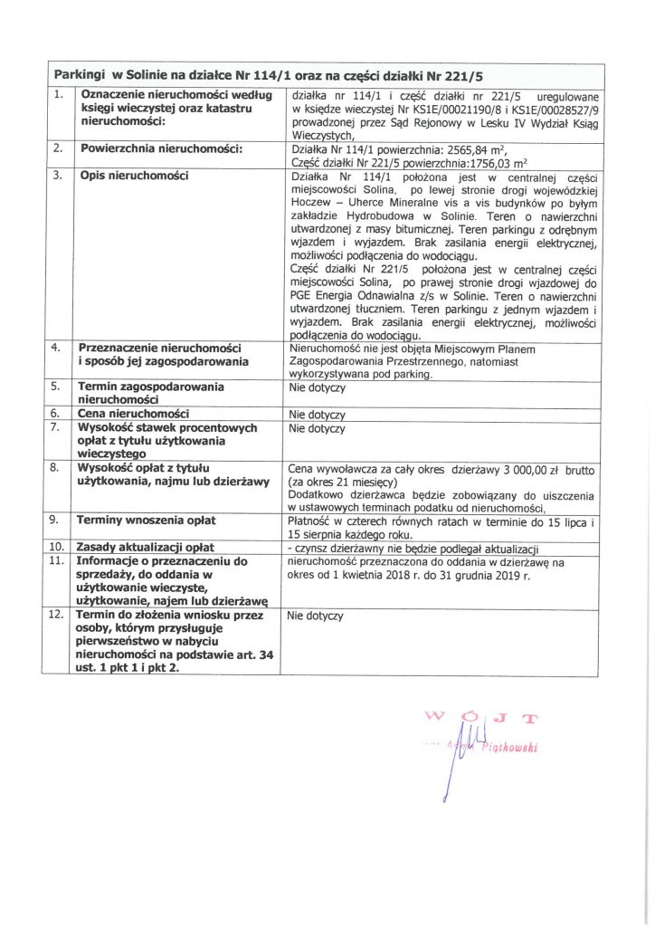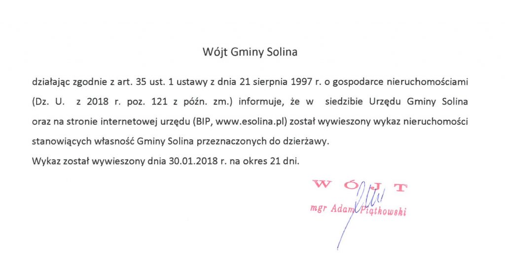 Obwieszczenie Wójta Gminy Solina z dnia 24 stycznia 2025 r.