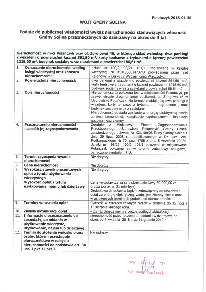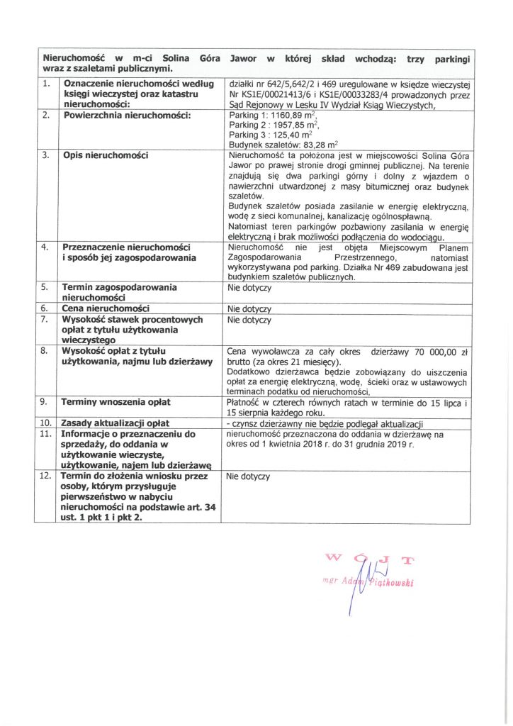 Wykaz nieruchomości przeznaczonych do dzierżawy