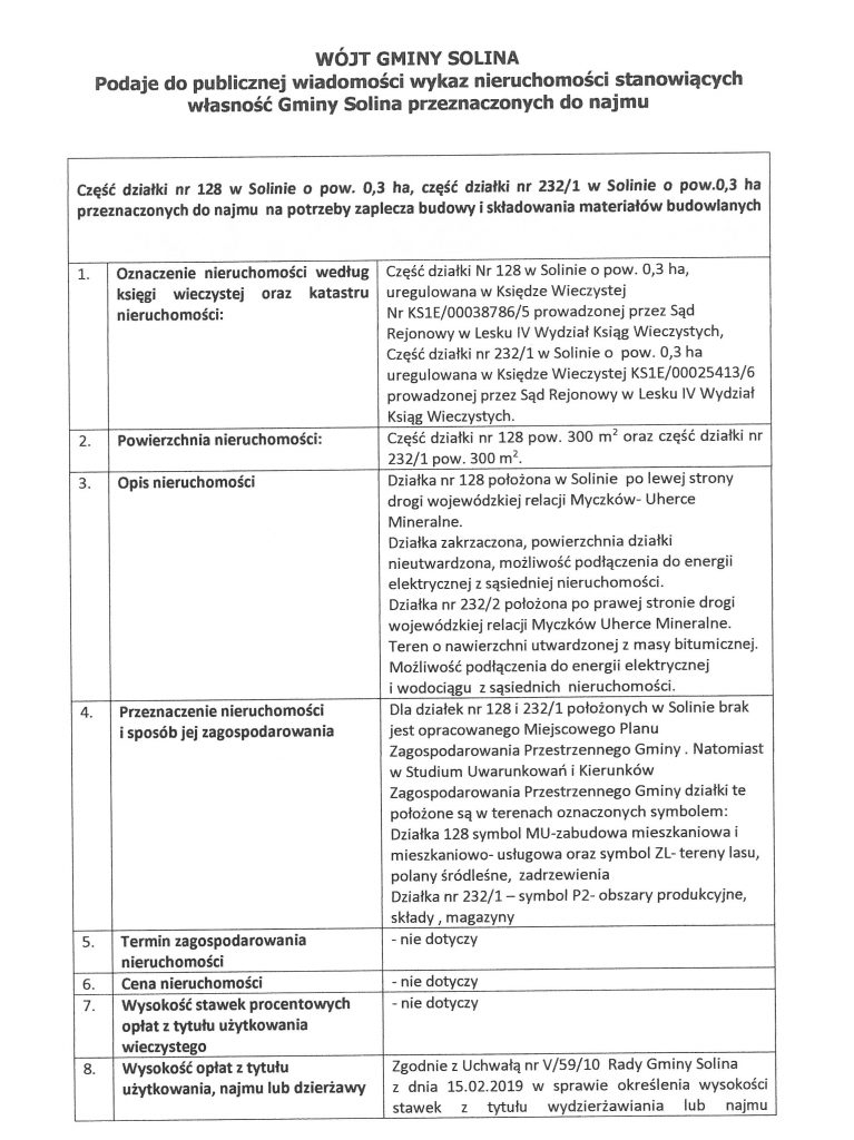 Obwieszczenie Wójta Gminy Solina z dnia 24 stycznia 2025 r.