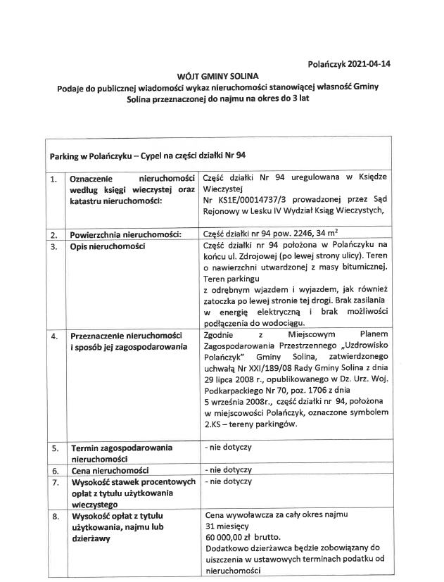 Obwieszczenie Wójta Gminy Solina z dnia 24 stycznia 2025 r.