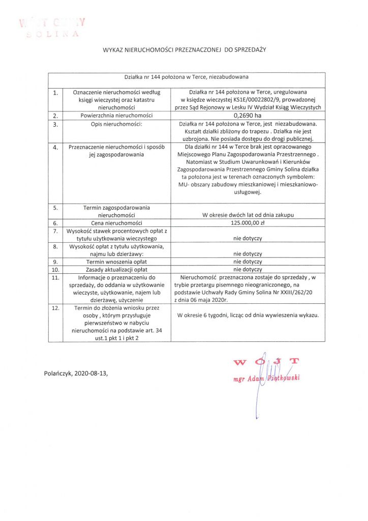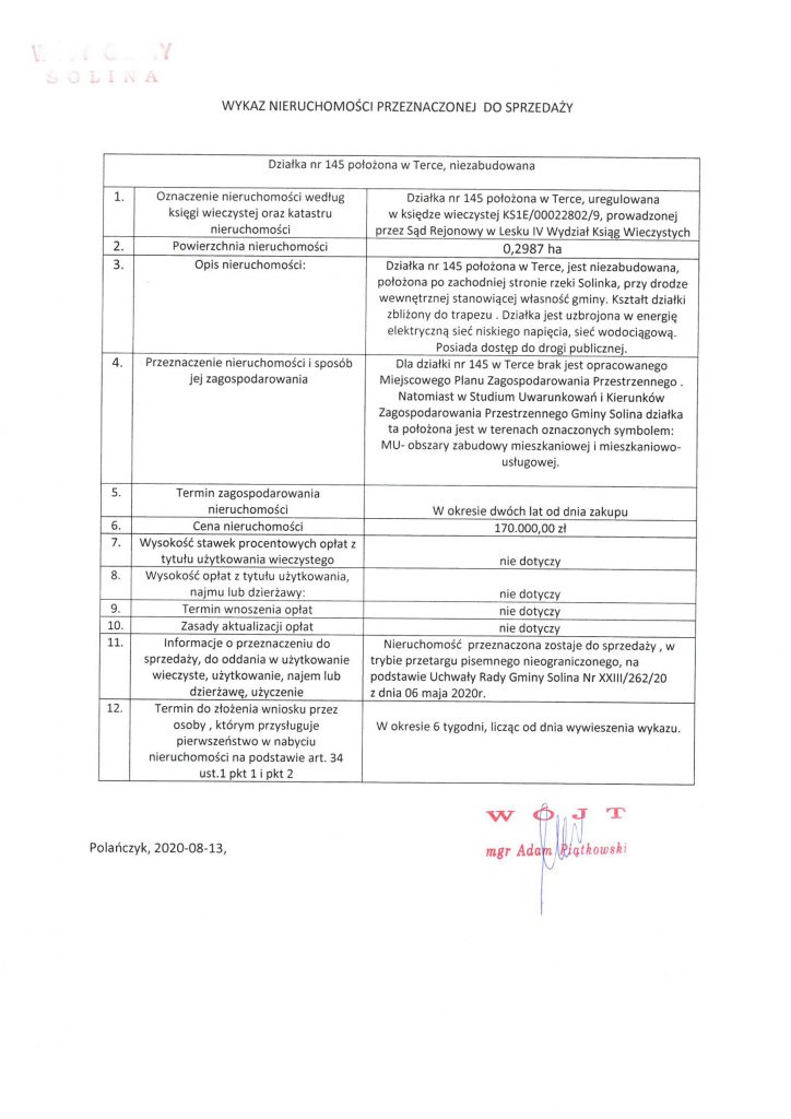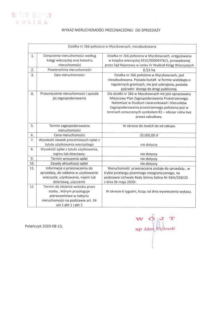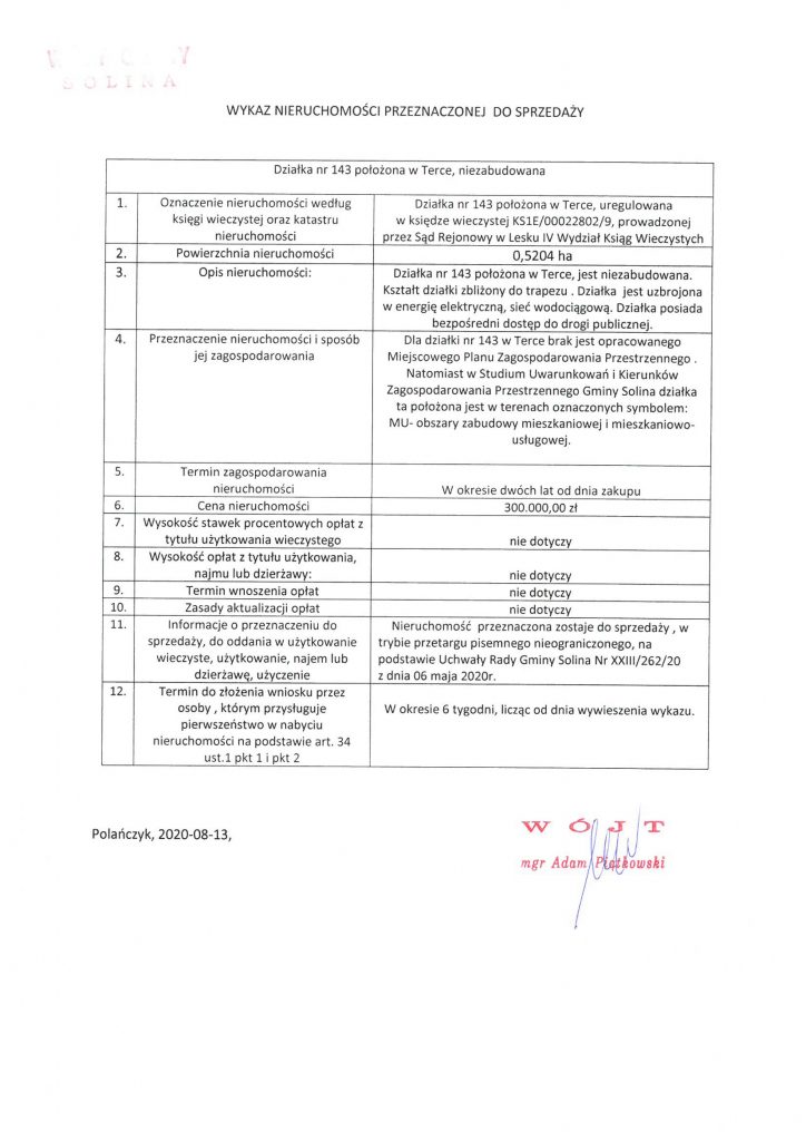 Obwieszczenie Wójta Gminy Solina z dnia 24 stycznia 2025 r.