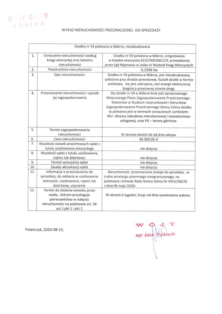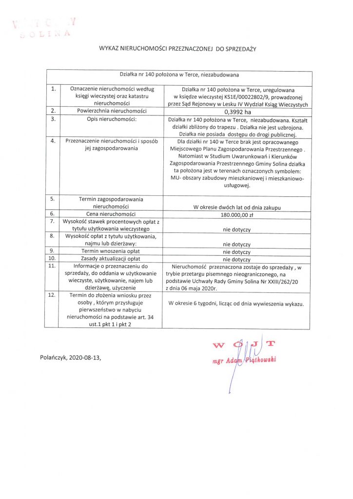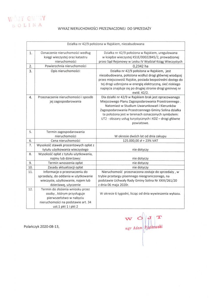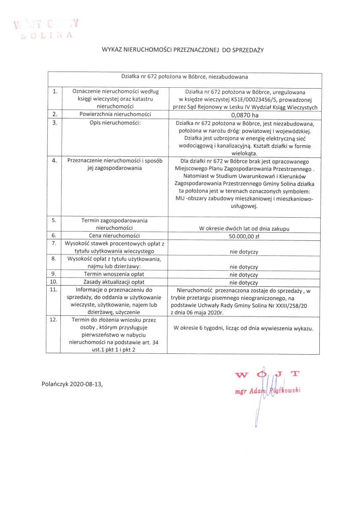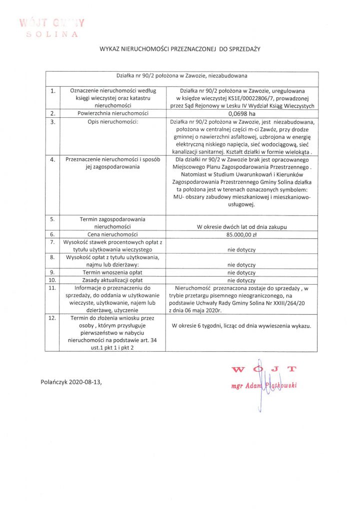 Obwieszczenie Wójta Gminy Solina z dnia 24 stycznia 2025 r.