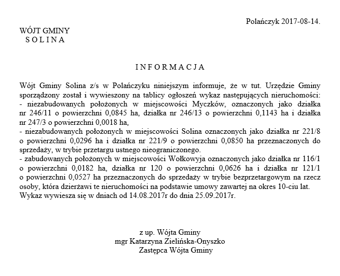 Obwieszczenie Wójta Gminy Solina z dnia 24 stycznia 2025 r.