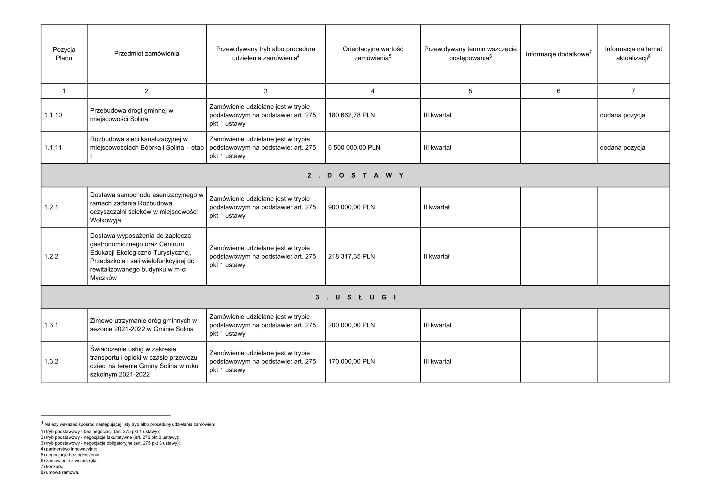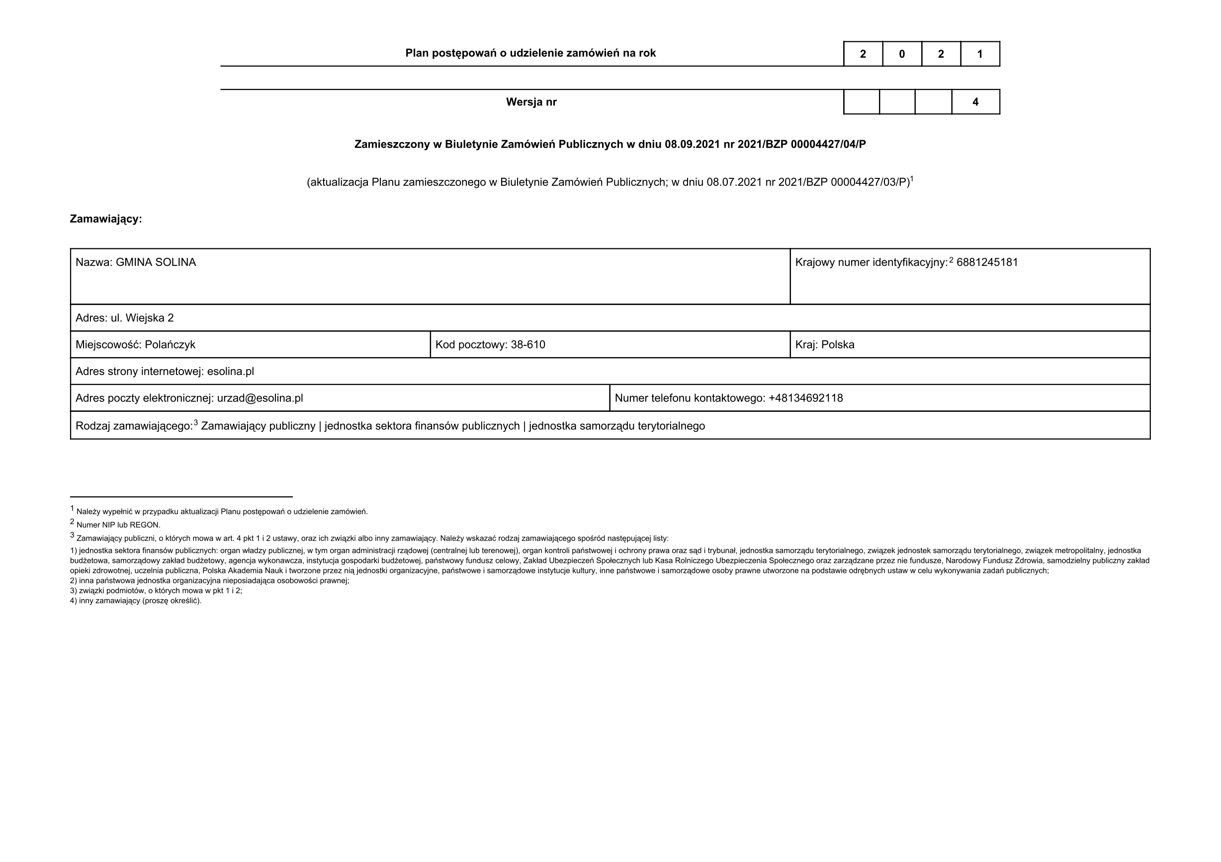 Aktualizacja planu postępowań o udzielenie zamówień na rok 2021 nr 4